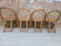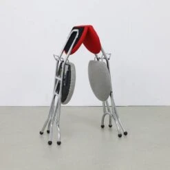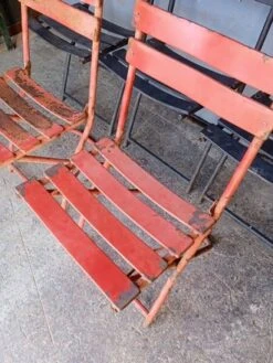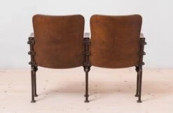 Early 20th Century Industrial Double Foldable Library Seat In Cast Iron Construction, Bent Plywood
