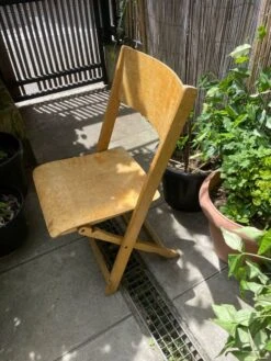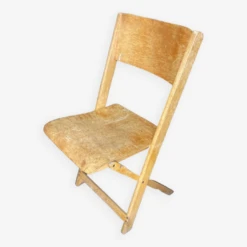 Light, very solid made in switzerland wood and metal, foldable visible traces of time but good general condition given its age.
