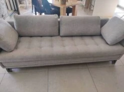 Roche Bobois sofa, littoral model. Color 313 gray. Padded seat. HR foam 35kg/m3. Legs: gray oak stained wood base. This sofa forms a set with the chaise longue offered under the reference WA669CWA. They can be positioned to form a corner sofa. Photos on request. Product designated by Philippe Bouix for Roche Bobois. Still in the Roche Bobois catalog. The base has imperfections (see photos) and the underside has rips which have been repaired for the most important ones (see photos).