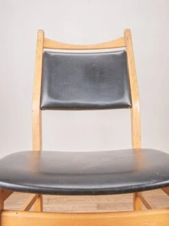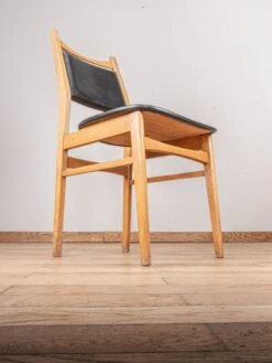 Charming chair from the 60s inspired by scandinavian style, with its solid beech structure and its back and seat in imitation leather.