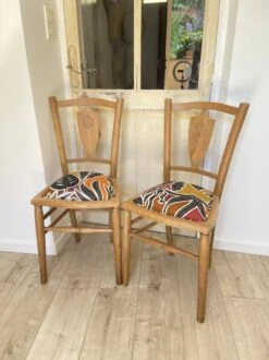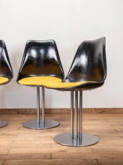 Charming chair from the 60s inspired by scandinavian style, with its solid beech structure and its back and seat in imitation leather.