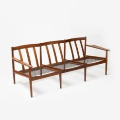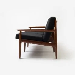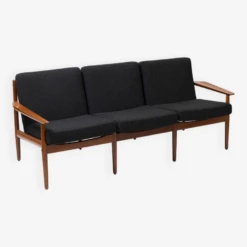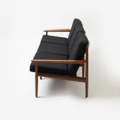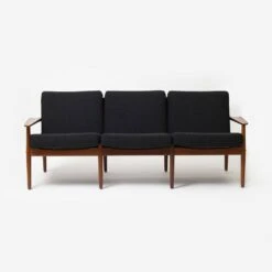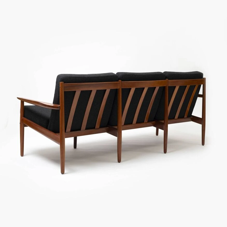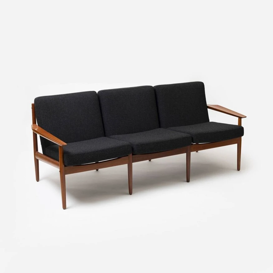 Arne vodder 3-seater sofa in teak and charcoal wool, produced by glostrup, denmark, 1960s.
