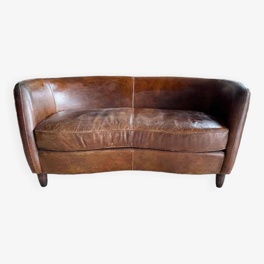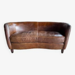 Vintage Sofa From The 70s In Genuine Brown Leather Italian Design