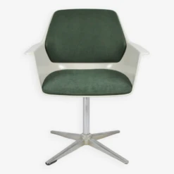Upholstered seat and backrest, mounted on a column with a four-arm base.
