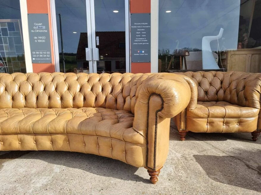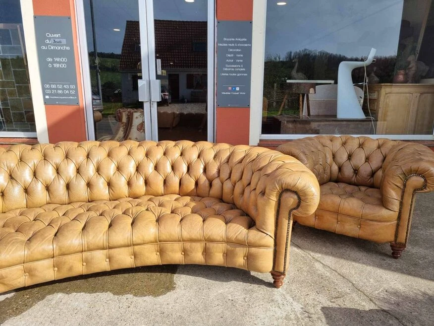 Its overall depth is 140cm. 2 armchairs are also available (see our other ads).