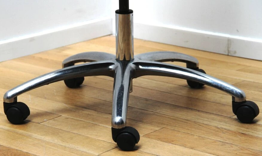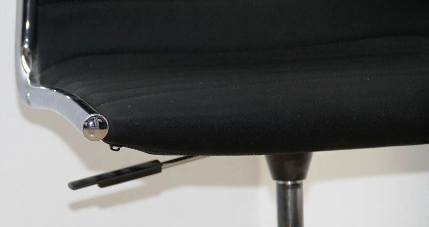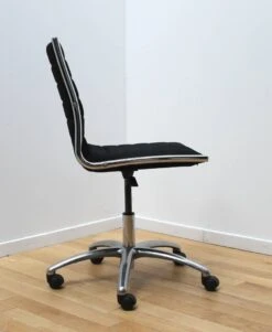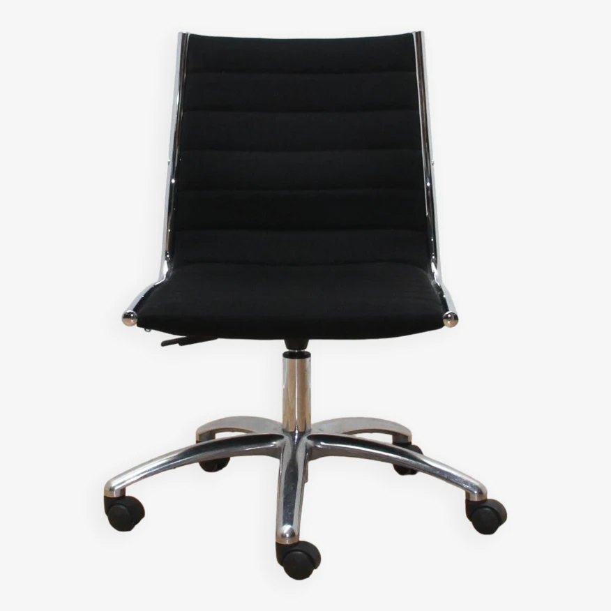 Chromed metal base and black fabric seat.