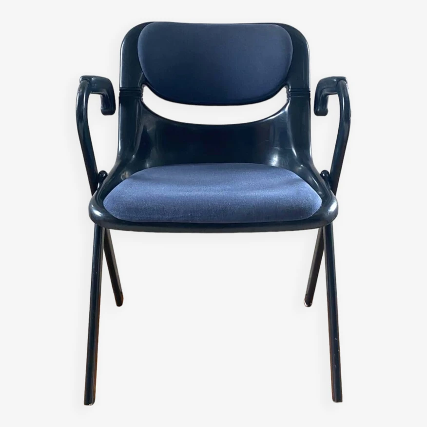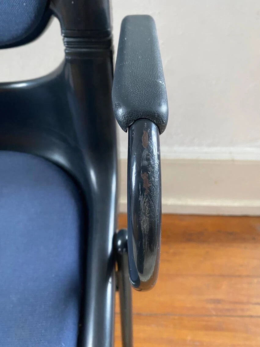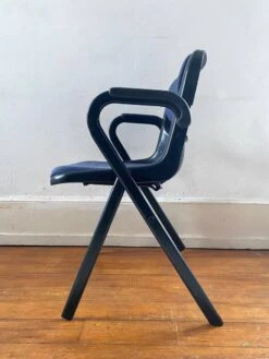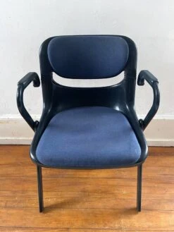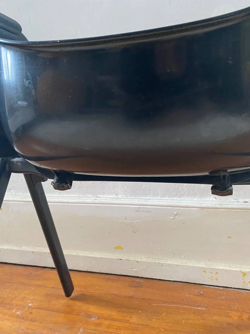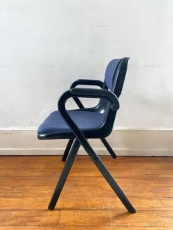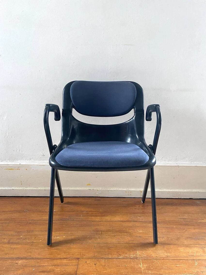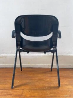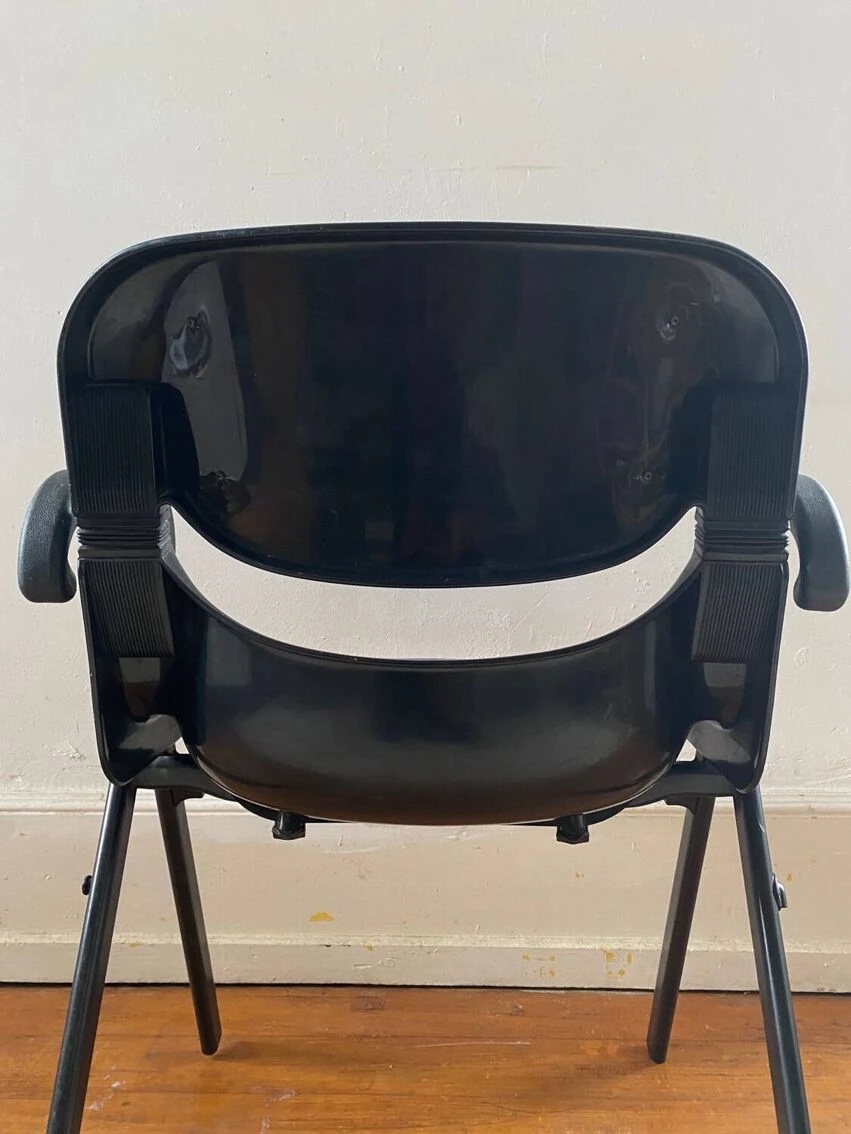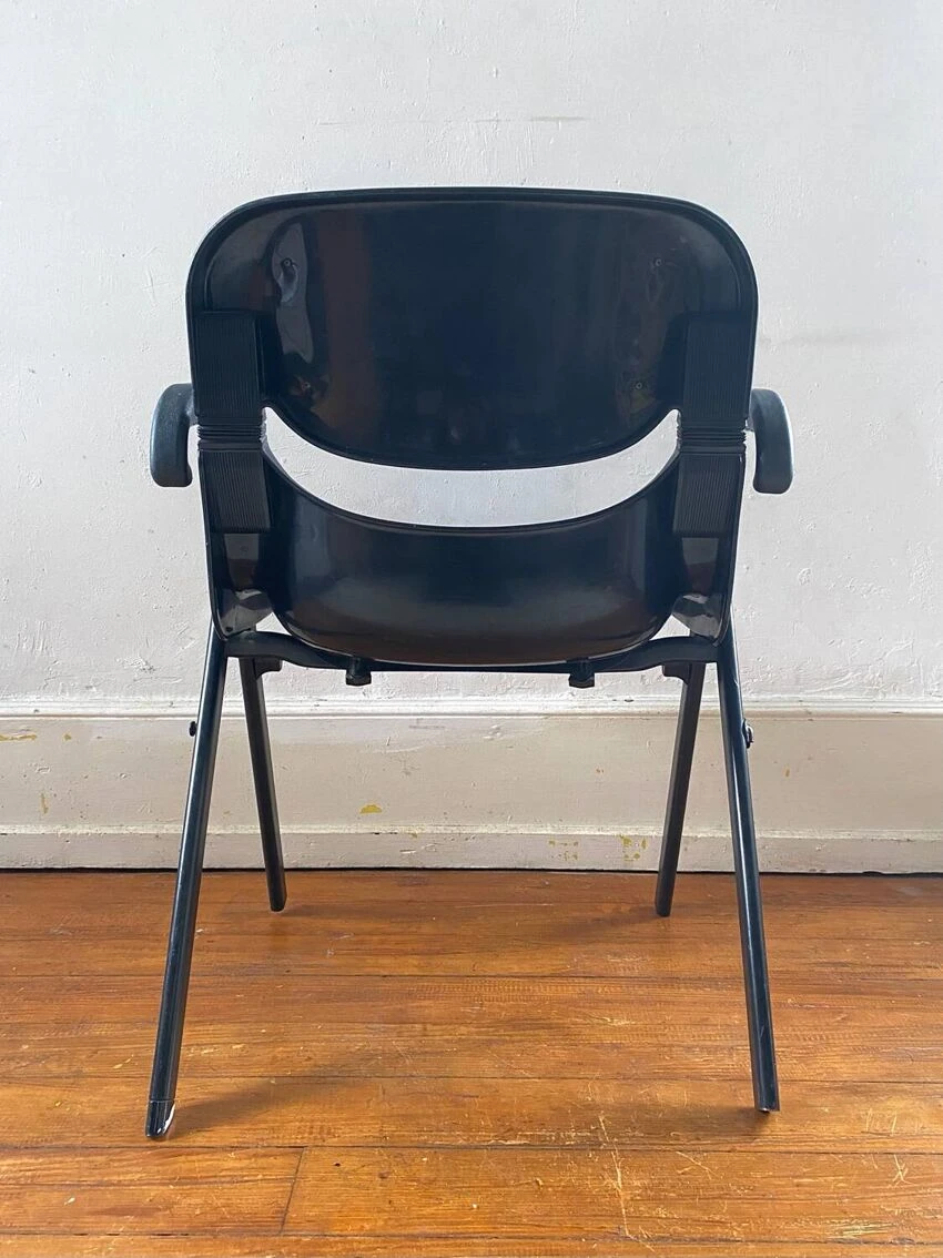 Mid-century style “Dorsal” model office or conference chair, designed in 1980 by Emilio Ambas and Giancarlo Piretti for the Italian company Openark. The Argentinian-Italian duo has been collaborating since the end of the 70s. The chair is made up of a black PVC shell fixed on a tubular metal structure and foot, manufactured in the 2000s, it is very resistant The upper half of the backrest is mounted on a rigid spring and is adjustable. The chair is in very good condition, showing signs of use on the plastics and legs.