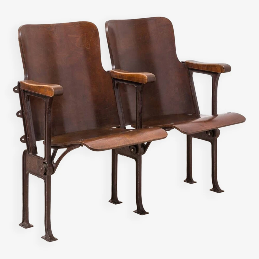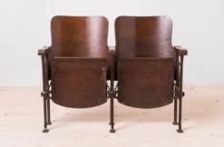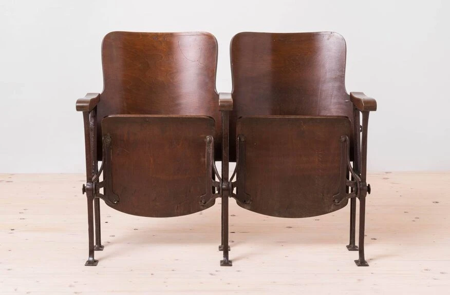 This double foldable seat from the early 20th century features wooden elements made of bent plywood, likely hardwood such as birch.