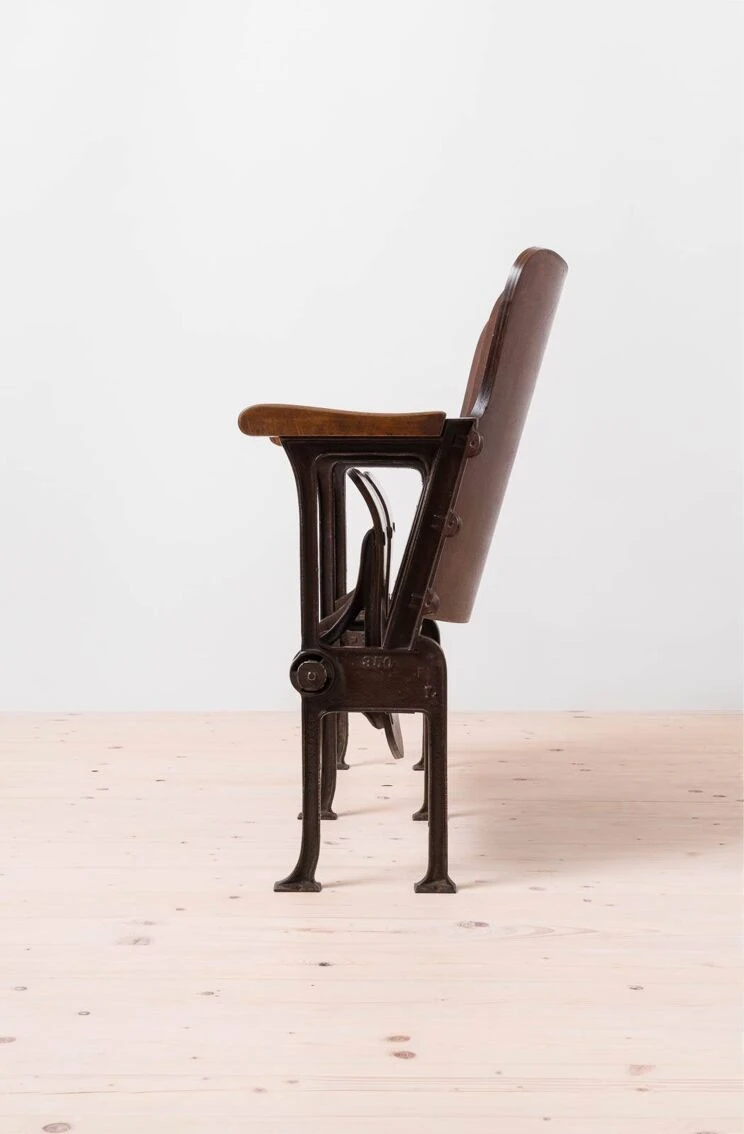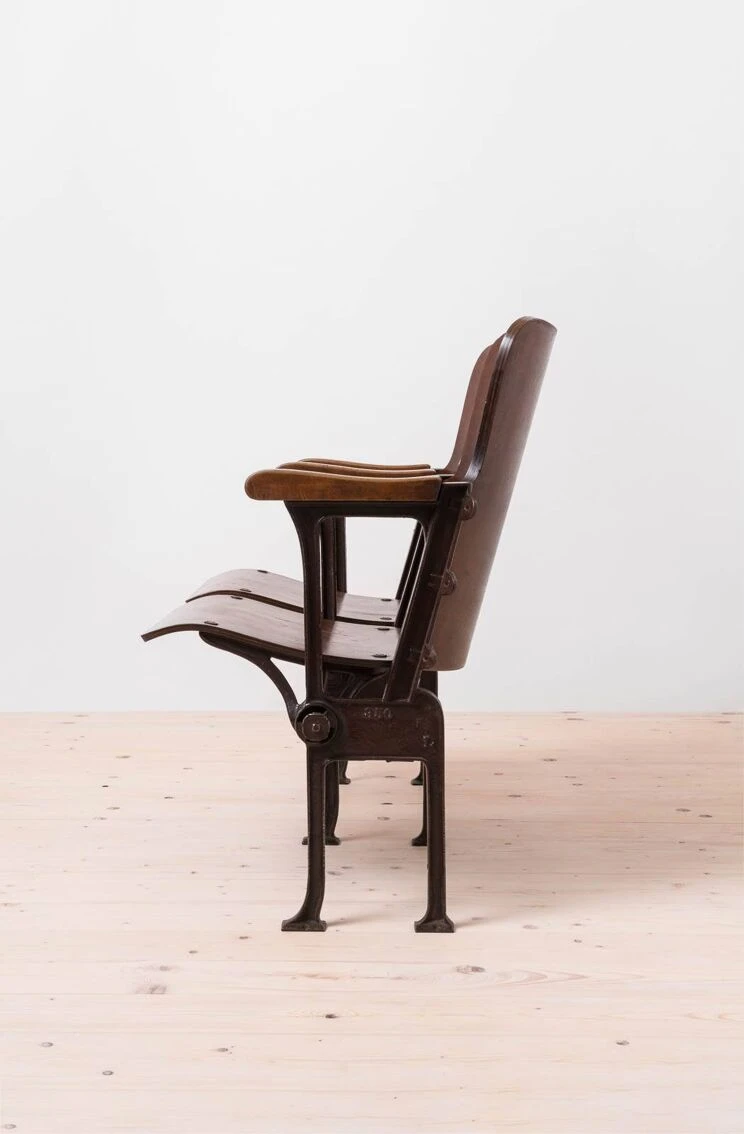 The structure is constructed of cast iron, maintained in excellent condition, making it an ideal fit for industrial-style interiors, features mounting holes which can be used if you would like to screw the seats to the floor.