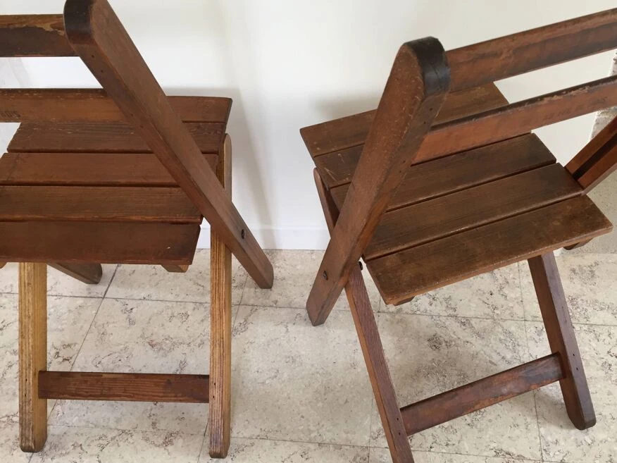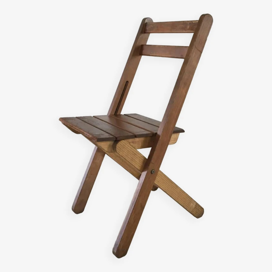 Beautiful folding wooden chair engraved “with wood fire”, practical and geometric as desired…