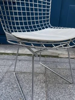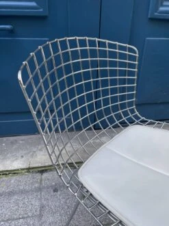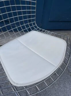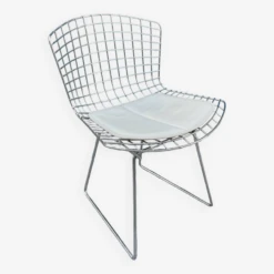 Set of 4 Harry Bertoia chrome chairs with white leather seat. Very good state ! The chairs date from the 1970s, so there is no marking.