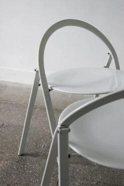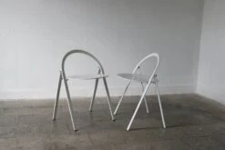 The metal piece of furniture folds with remarkable ease being a flat object only a few centimeters thick when folded.