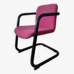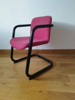 Napoli visitor armchair in red. Dimensions. L 46/57 X p 45 X h 98. Red seat and back. Fixed mechanism. Sled base in black lacquered steel. In excellent condition.