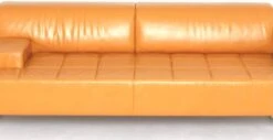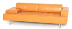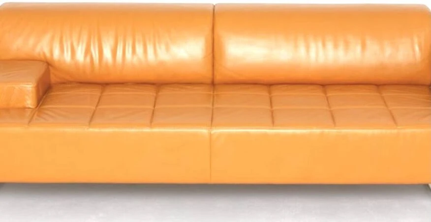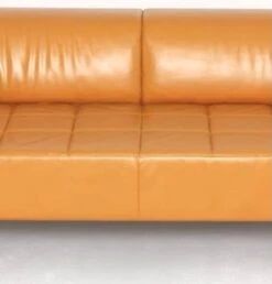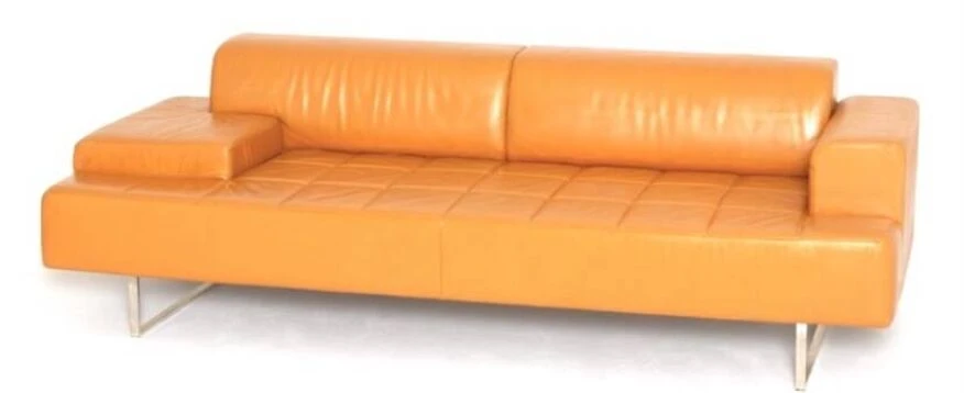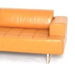 Superb quadra model leather sofa from poltrona frau in excellent condition. Orange leather sofa. Leather couch. Orange sofa. Sofa poltrona frau. High-end sofa. Poltrona frau furniture. High-end furniture. Designer sofa. Designer sofa. Designer sofa.