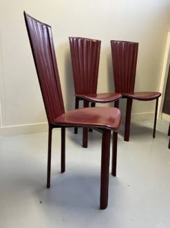 Beautiful set of 4 high-backed chairs in the style of sossano VI or pietro costantini upholstered in burgundy red leather.