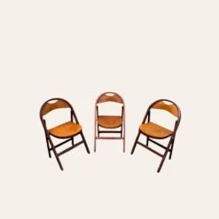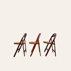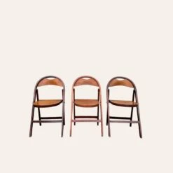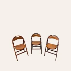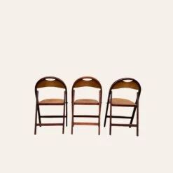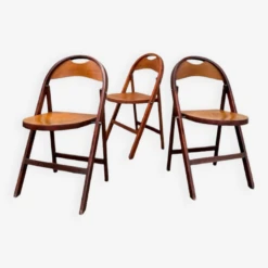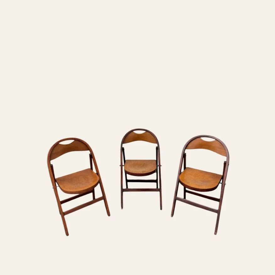 Beautiful set of 3 folding chairs in bent beech, circa 1930.