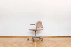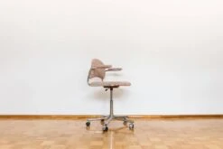 Chair rest on metal star base, on wheels (metal parts are chrome-plated)
