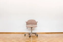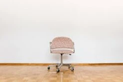 Reupholstered chair in white and red (terracotta colour) boucle fabric from kvadrat.