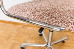 Reupholstered chair in white and red (terracotta colour) boucle fabric from kvadrat.