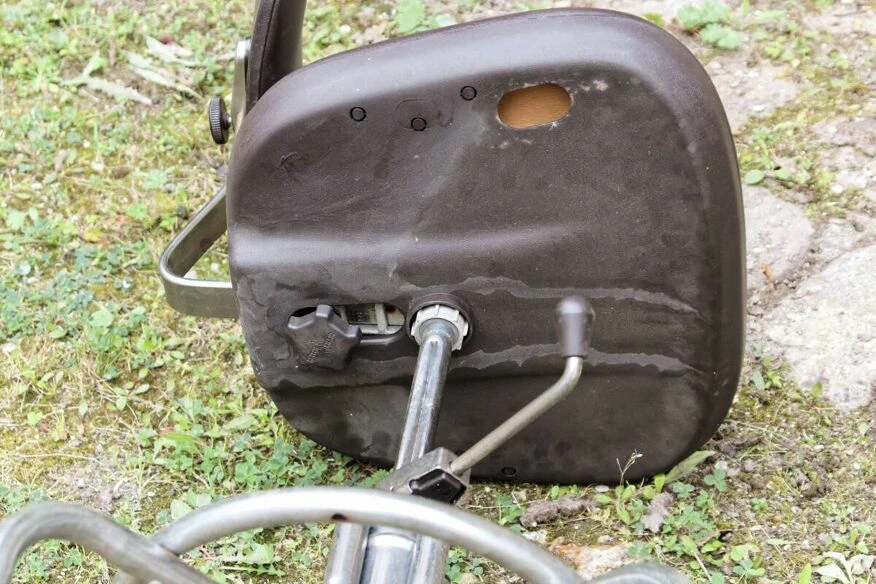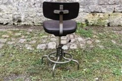 Pretty swivel office chair in chrome metal and brown leatherette.