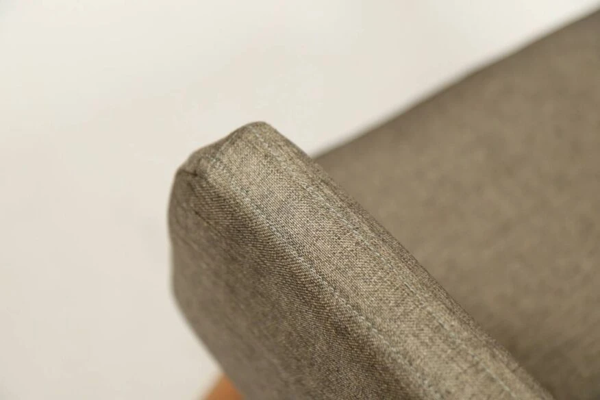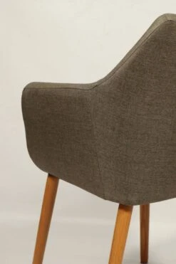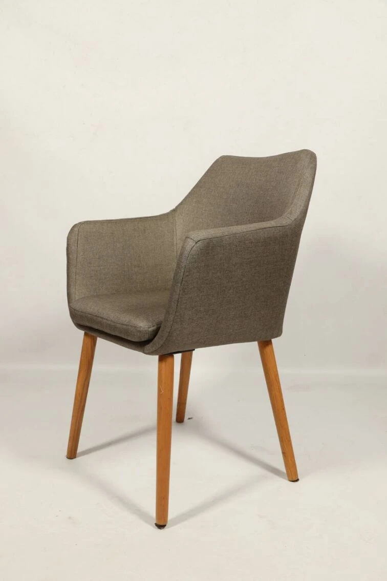 Ce fauteuil de bureau, après une rénovation tapissière complète, est fabriqué en bois de chêne avec un revêtement en tissu gris anthracite agréable au toucher.