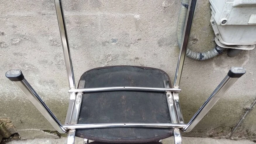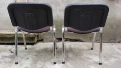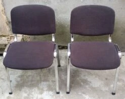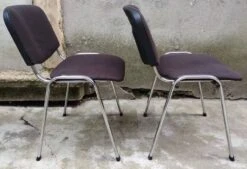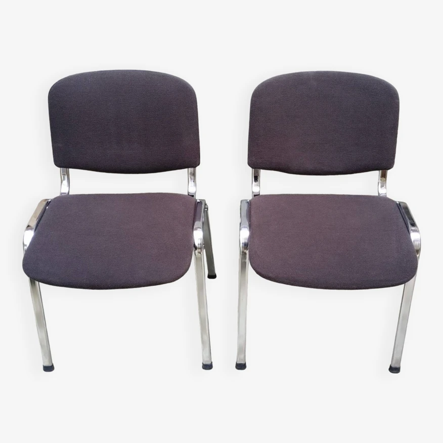 Set of 2 waiting room or meeting chairs in brown fabric resting on 4 chrome metal legs dating from the 80s.