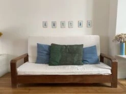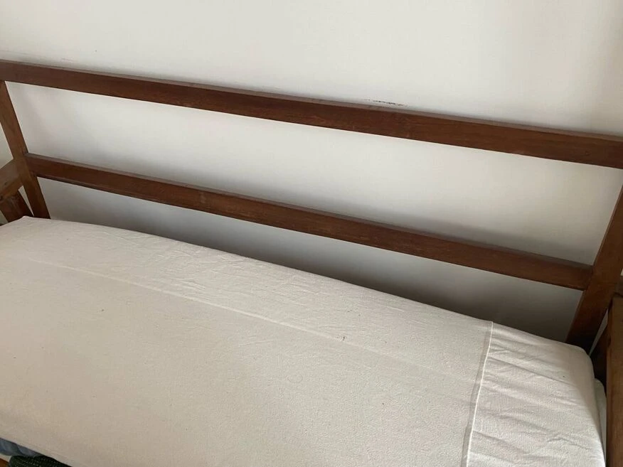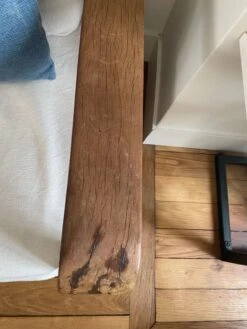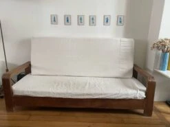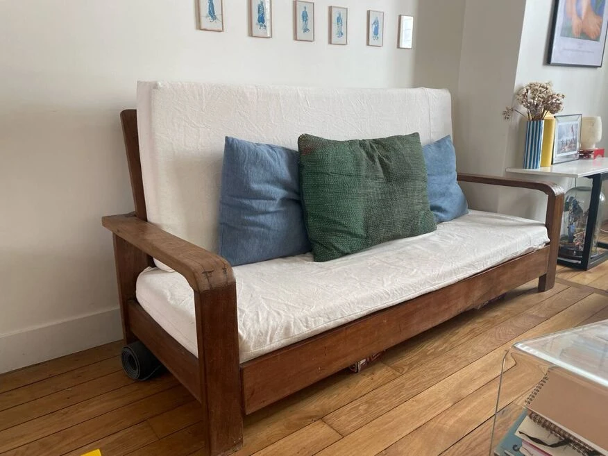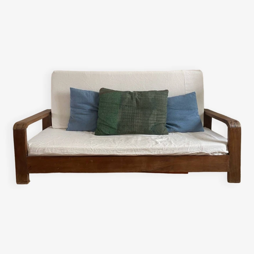Sofa in exotic wood, dating from the colonial era in very good condition with the exception of the left armrest see default photo the modules are removable (via zip) and have been redone with off-white cotton in 2022 to be collected in september in paris 20 (1st floor, can be lowered to the ground floor for the buyer).